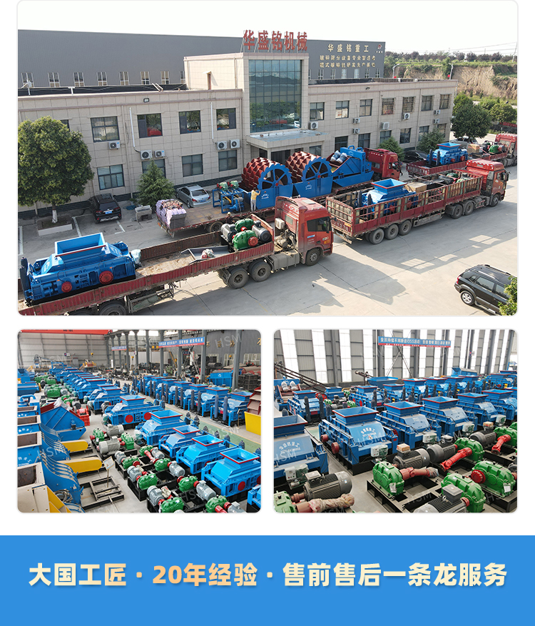 華盛銘對輥破碎機、河卵石制砂機、石頭制砂機與您攜手共建環保沙場